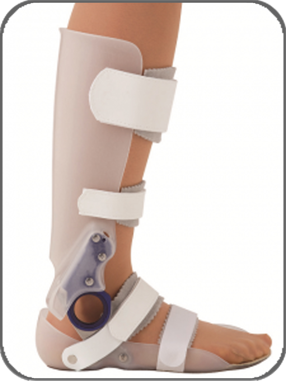 タマラック 麻痺性疾患による下垂足に使用され、ウレタン製の継手により最小限の抵抗で歩行することができます。 |